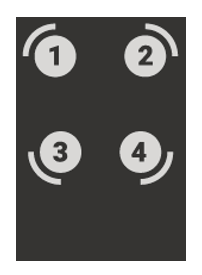 Una escena es el conjunto de todos los botones del mando. El mando dispone de 2 escenas que permiten ampliar el número de funciones a realizar. En este mando, cada botón puede realizar 2 funciones diferentes: una en la escena 1 y otra en la escena 2.